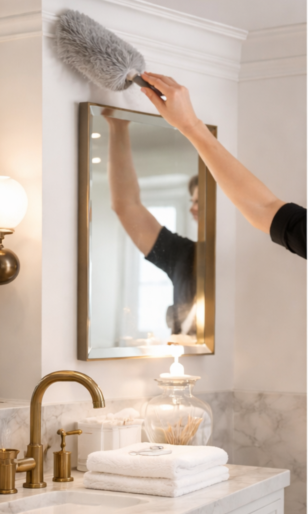 Shine mirrors, glass, and chrome fixtures for a spotless, hotel-level finish